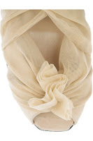 The heel measures 6.5 inches with a 1.5 inch platform. These Fendi sandals retail for $1,195 have a nude sheer tulle leg ties and ruffle detail at toe, a designer-logo-embossed leather insole and fasten with a buckle at ankle. Pair them with a some nude seperates for your spring and summer wardrobe and you will be sure to be stepping in style. Check out Ashley Olsen wearing them at the Elle Style Awards.